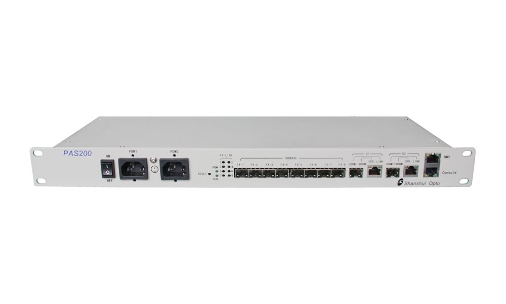 PAS200是新一代千兆智能光纖收發(fā)器,滿足用戶業(yè)務(wù)光纖接入。提供 2 個以太網(wǎng)千兆光口以及豐富的以太網(wǎng)千兆電口,滿足用戶多業(yè)務(wù)、高質(zhì)量傳輸要求。適用于最后 1 公里以太網(wǎng)業(yè)務(wù)接入,可應(yīng)用于企事業(yè)單位、金融系統(tǒng)、網(wǎng)吧、院校、連鎖機構(gòu)等。